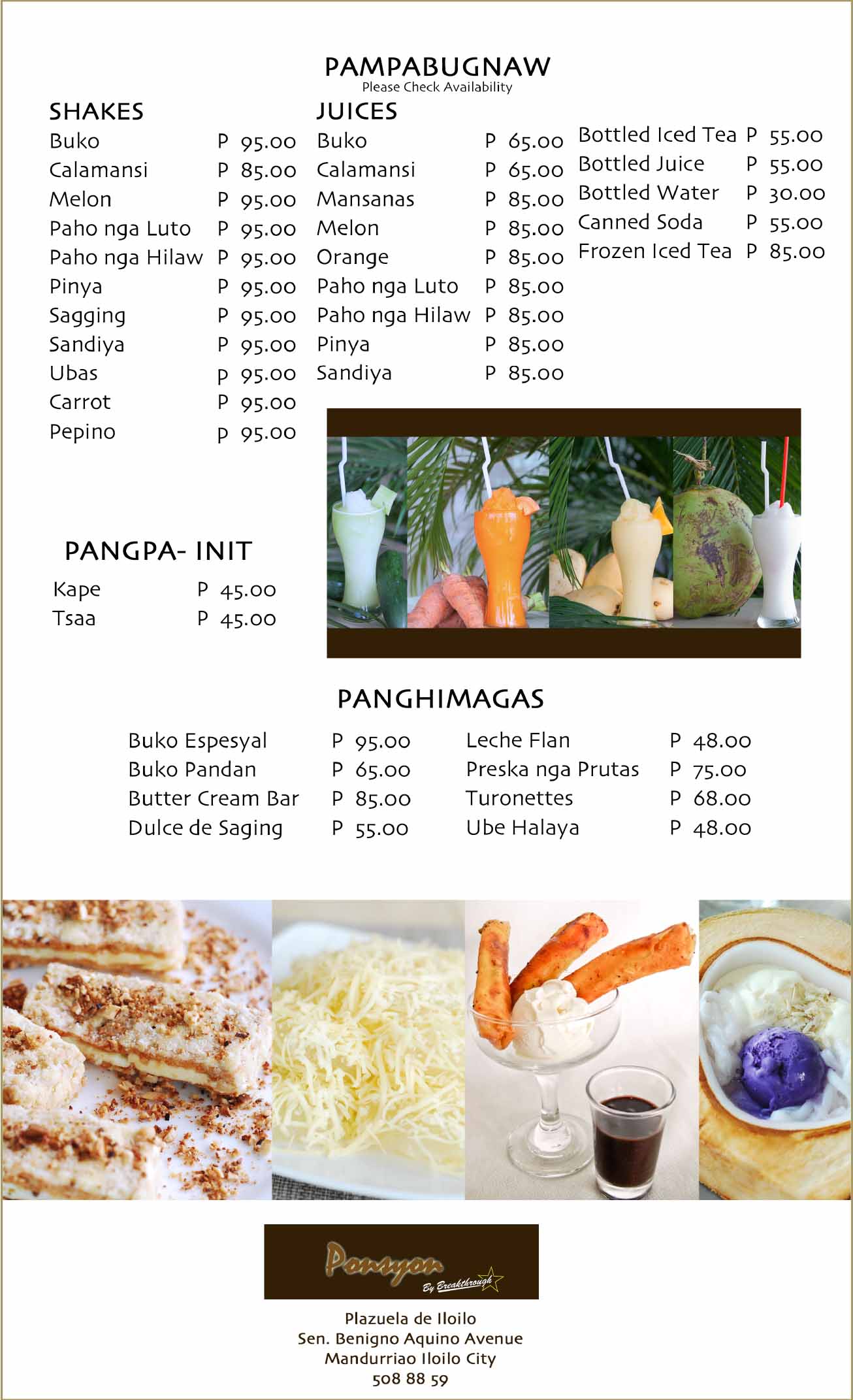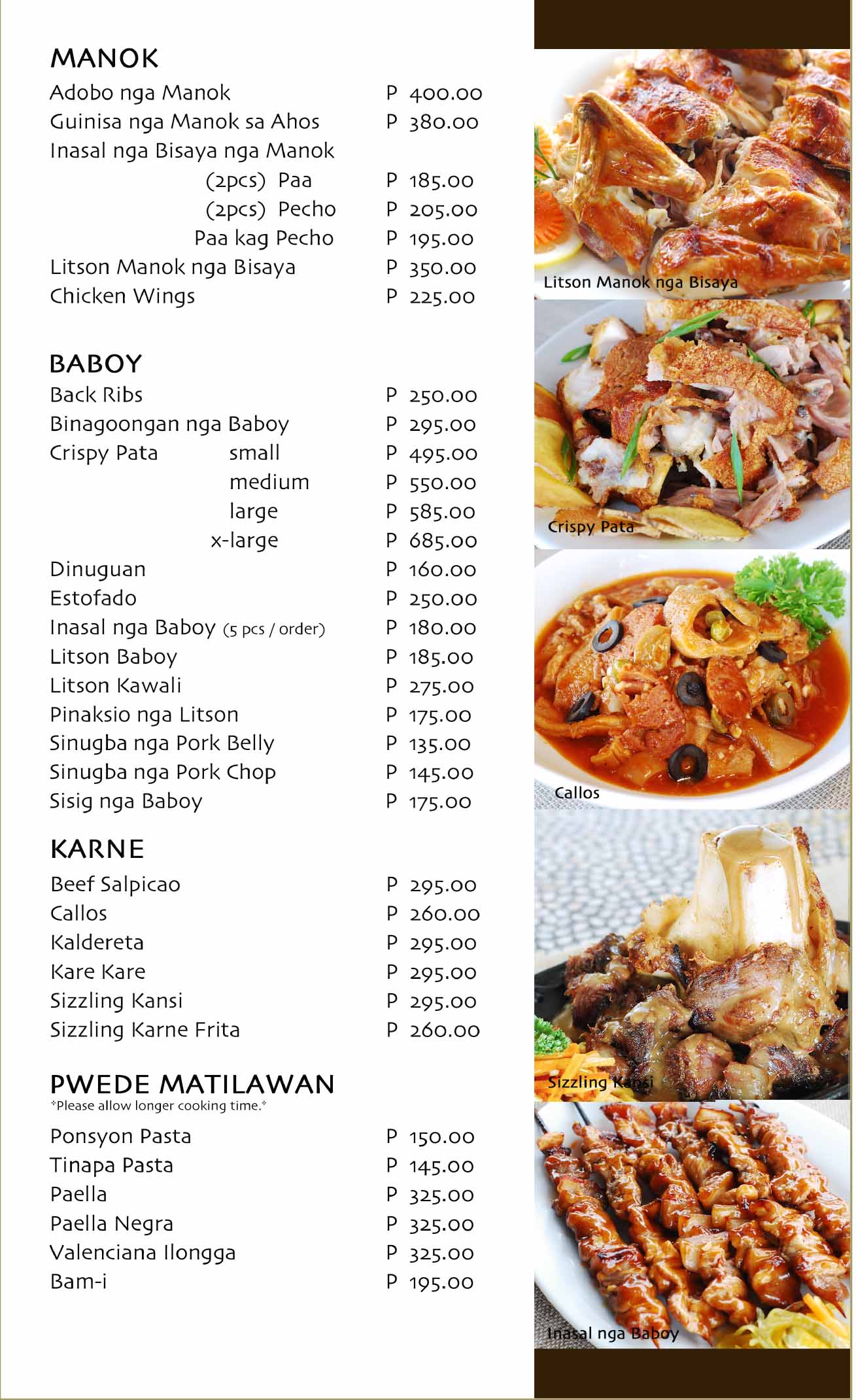 Ponsyon Top Recommendations Binakol nga Manok Crispy Pata Sizzling Kansi Ponsyon Menu Starters and Sides Pension Mains Paborito Ponsyon Bugana Sang Kadagatan Desserts